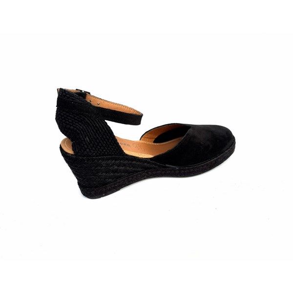 Alpargatas Mediterránea de puntera cubierta negro con cuña al tono.