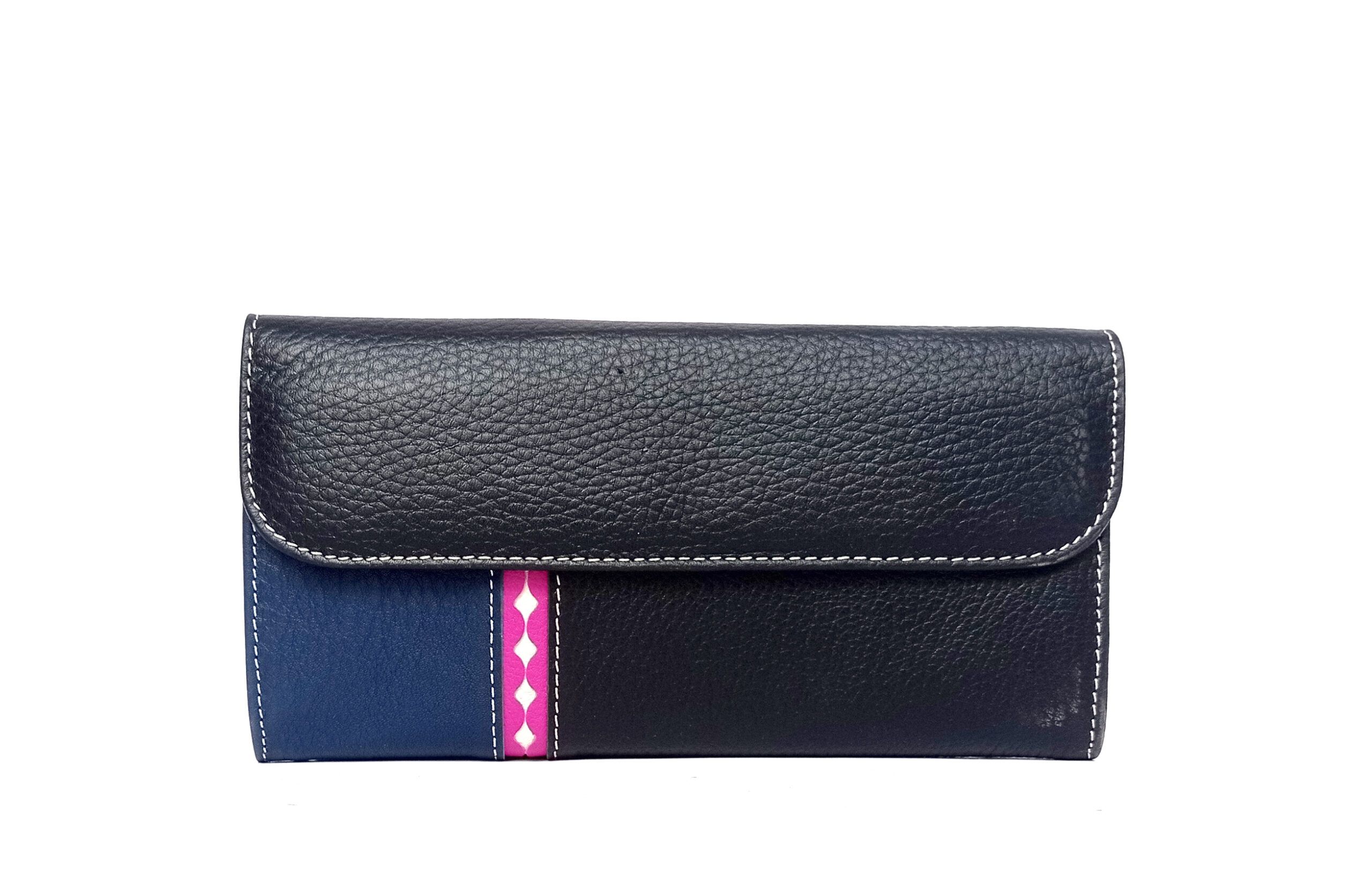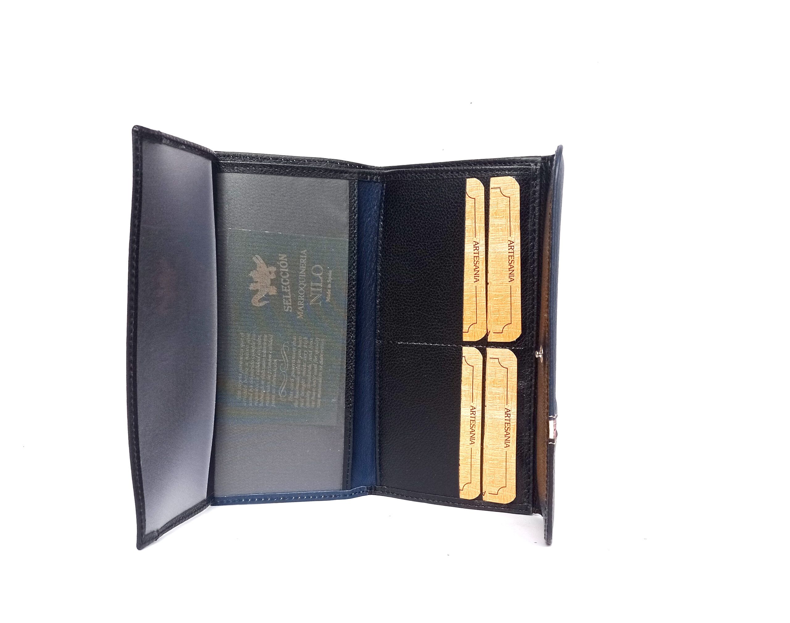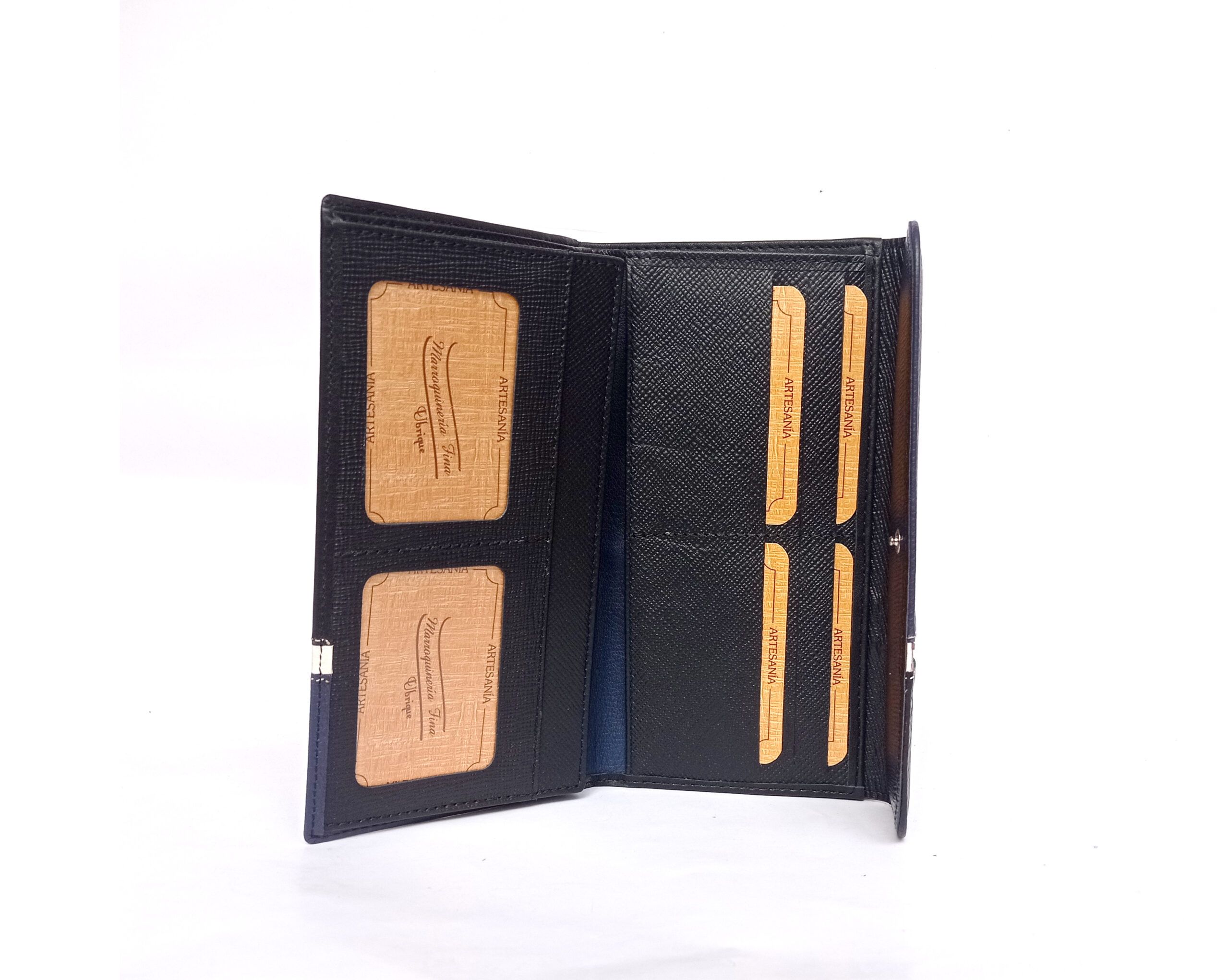 Billetera de mujer piel grande negro/marino de la colección de continuidad de Marroquinería Nilo.