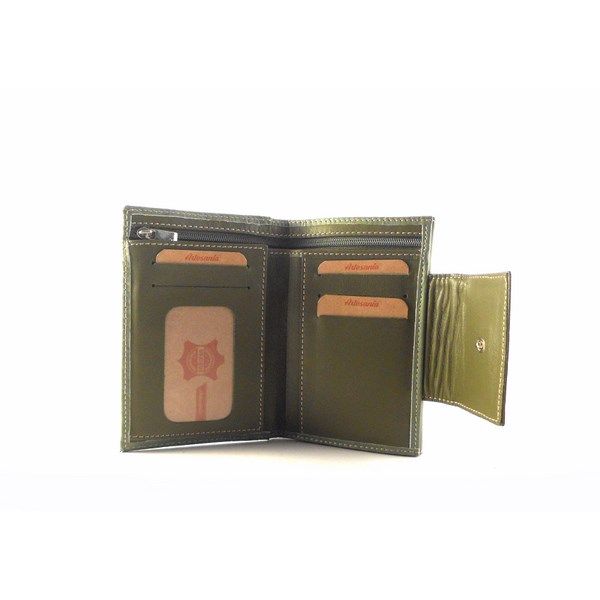Cartera de mujer de tamaño pequeño de la colección de Nilo. Billetera con 9 ranuras para tarjetas, 1 funda transparente y billetero doble, uno de ellos con cierre de cremallera. Monedero doble separado por bolsillo con cremallera central. Piel vacuno natural hidratada, suave y flexible.