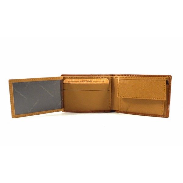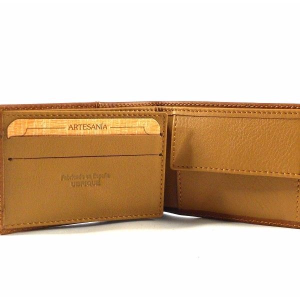 Billetera de la colección de Nilo. Piel vacuno grasa. Monedero interior con 4 tarjeteros, 1 espacio para fotos o carnet y billetero simple.