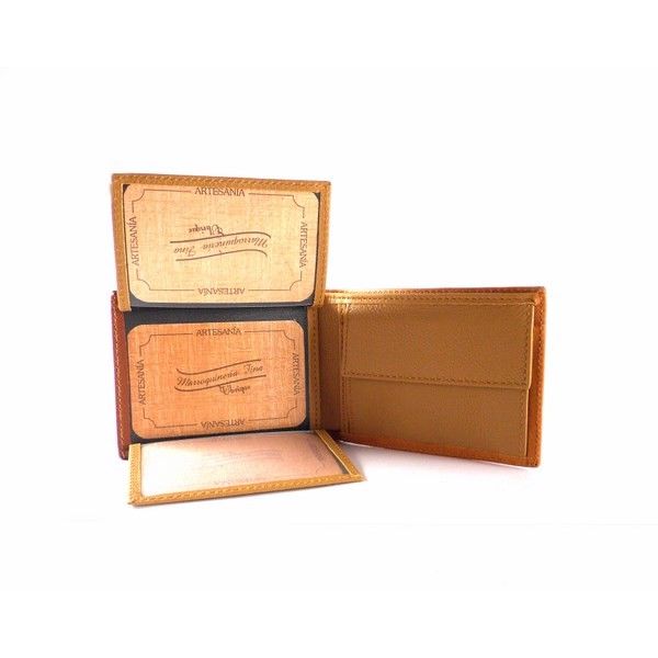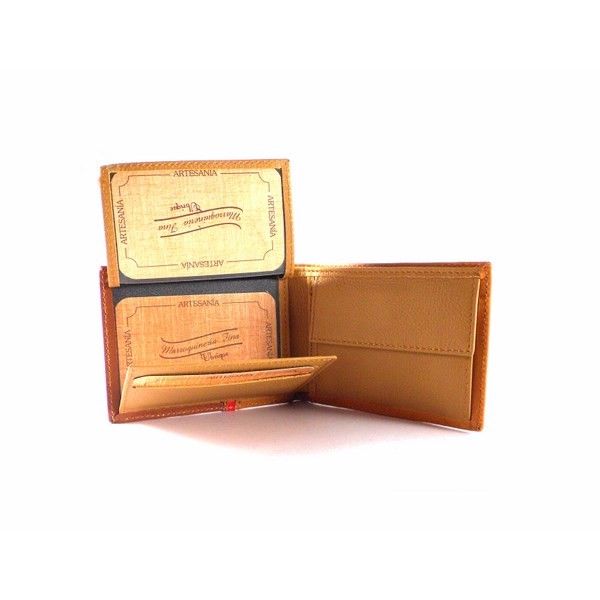 Billetera piel Nilo americana sin cierre con monedero en colores camel