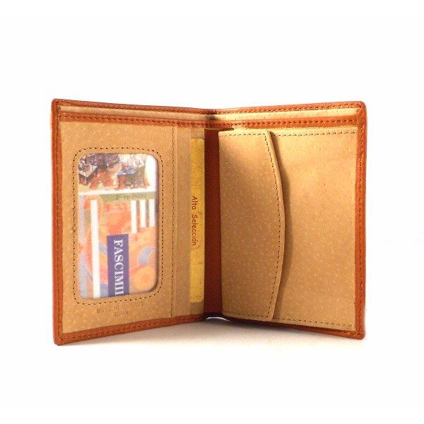 Billetera de la colección de Nilo. Piel vacuno natural hidratada. Monedero interior con cierre de broche, 4 tarjeteros y doble billetero. Disponible en color cuero. Dimensiones : 8.5X11 cm