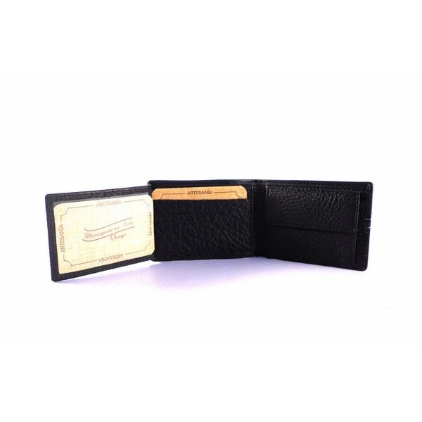 Billetera de la colección de Nilo de tipo americano. Piel vacuno hidratada, suave y flexible. Monedero interior, 5 tarjeteros y billetero. Color único negro.