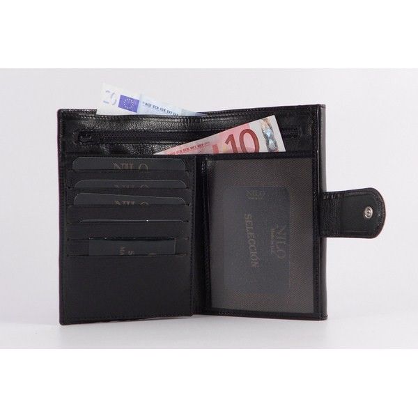 Con unas medidas de 16×10,5 centímetros. Es un billetero de piel al tono de primera calidad en color negro. Está forrado en raso de primera calidad. Tiene un monedero exterior con cremallera y dos departamentos para monedas. Además con 6 Compartimentos para tarjetas y3 Compartimentos transparentes para fotos o documentación. Y 1 Compartimento grande para documentación y 1 Compartimento interior con cremallera. Es de Fabricación Nacional cien por cien.