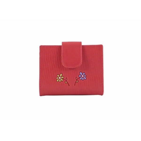 Billetero pequeño en piel juvenil de color rojo. Por un lado este bonito billetero piel juvenil color cuero cuenta con muchas funciones. Entre ellas cuenta con monedero de cremallera. Compartimentos para tarjetas. 1 Compartimento transparente para fotos o documentación. 1 Compartimento adicional. Finalmente cuenta con el grabado de dos margaritas y en color verde y azul. Fabricado en España.
