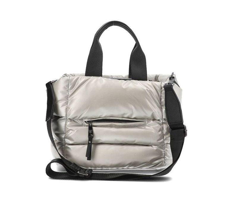 Bolso acolchado de la colección de Pepe Moll modelo 232170 en tejido Tecno. Bolso super ligero elaborado en tejido brillo estilo nylon, con dos asas fijas de mano y una extraíble de bandolera. Cierre principal de cremallera. Un bolsillo delantero y otro trasero ambos con cremallera. Interior textil, con dos bolsillos, uno de ellos con cremallera.