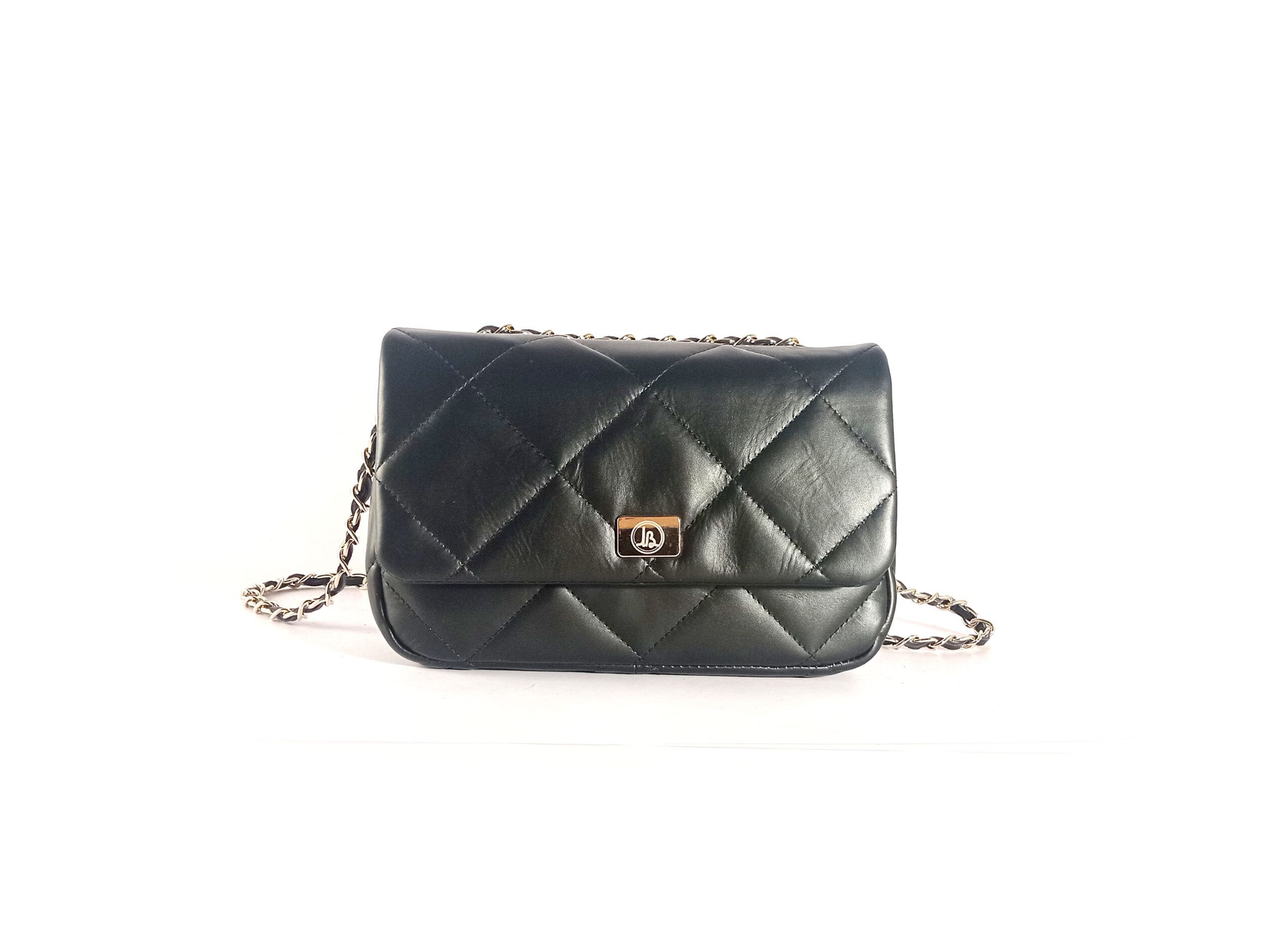 Bolso bandolera tipo chanel de la colección de LB. Bolso en piel vacuno natural hidratada y flexible de alta calidad. Bolso con solapa media y cierre de click. Bandolera de cadena regulable.