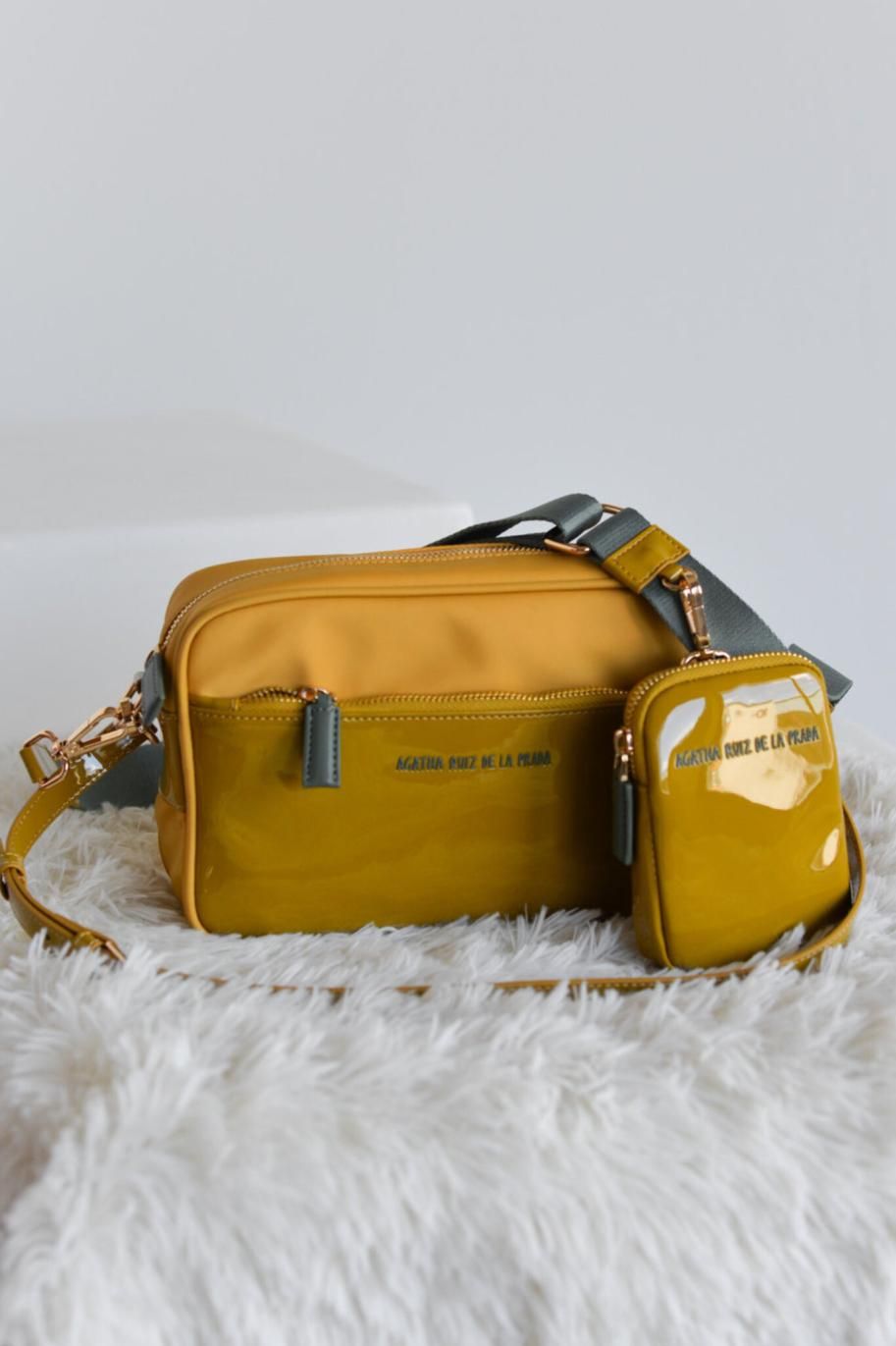Bolso bandolera Agatha Ruiz de la Prada nylon y charol mostaza.