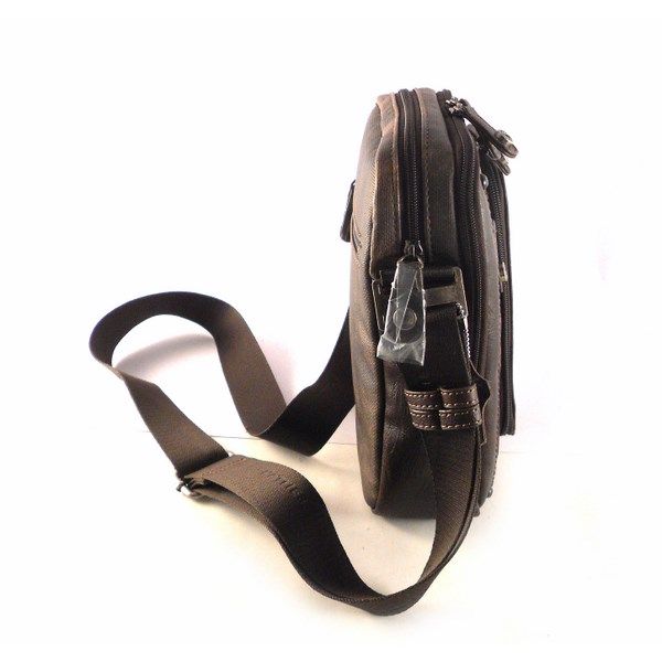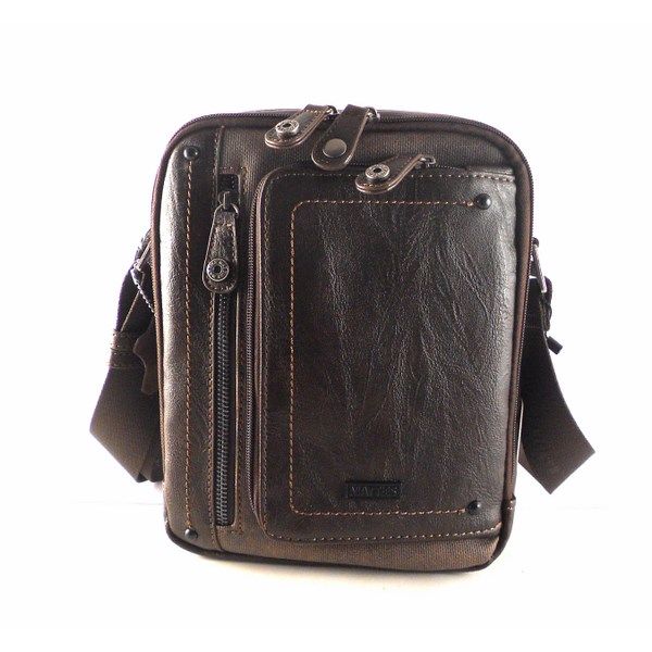 Bolso bandolera hombre Matties Bags nylon combinado color marrón con cierres de cremalleras y bolsillos exteriores.