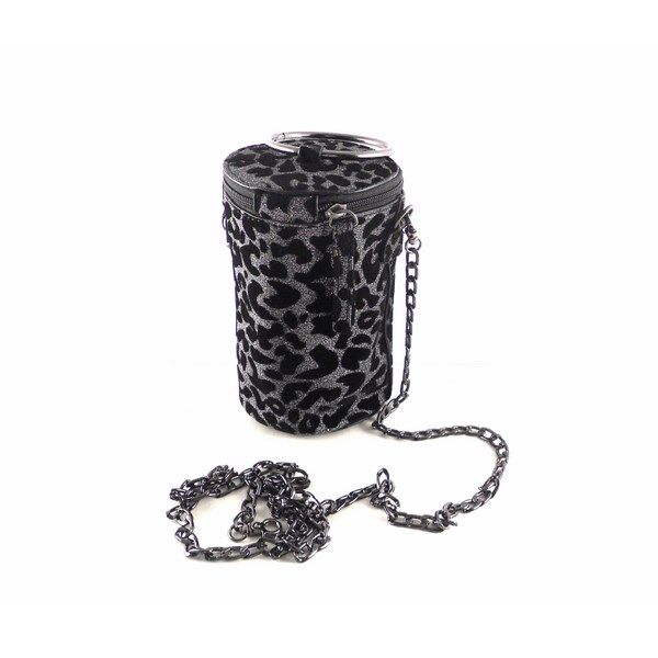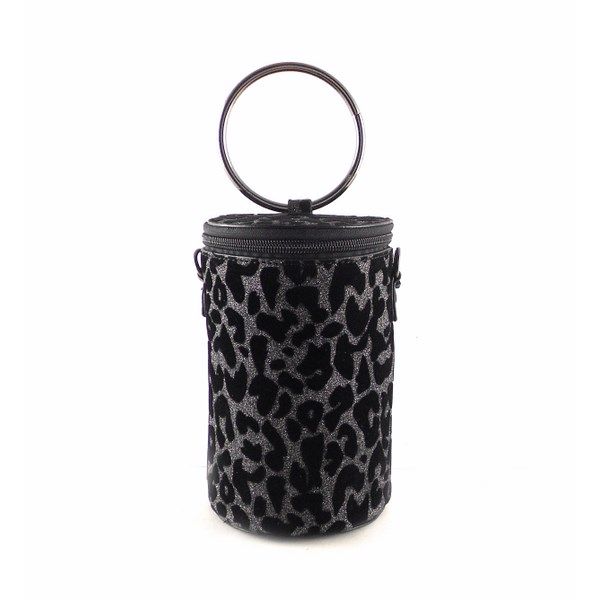 Bolso cilindro para fiesta o noche E.Ferri print glitter plata vieja y negro