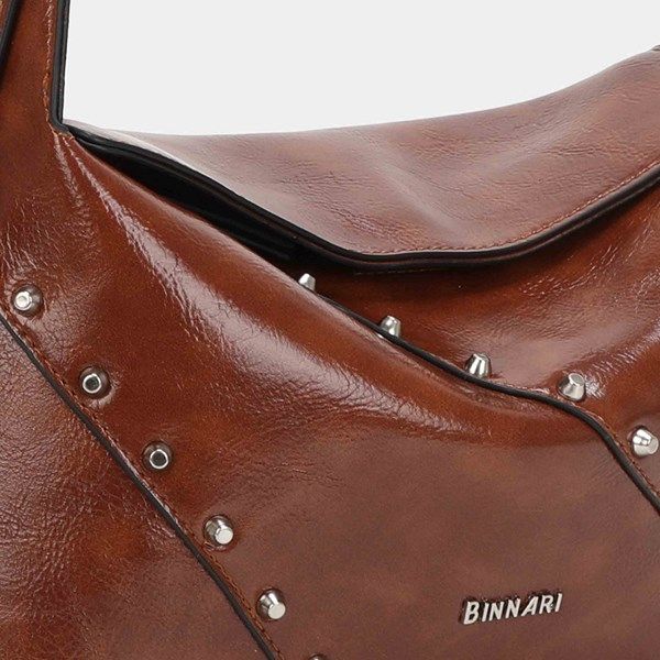 Bolso de hombro de la colección de Binnari modelo Freeda confeccionado en pu de alta calidad. Tiene unas tachas decorativas en la parte delantera en color nickel . Tiene 3 compartiemntos en su interior, uno de ellos con cremallera, portando así mayor seguridad.Además tiene un asa en su interior para poder llevarlo como bandolera, 2 en 1. Los detalles decorativos son de color nickel.