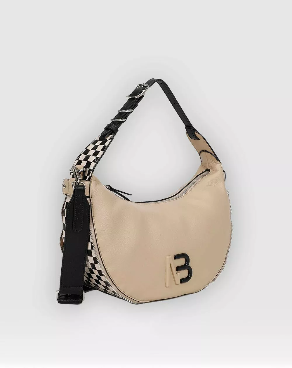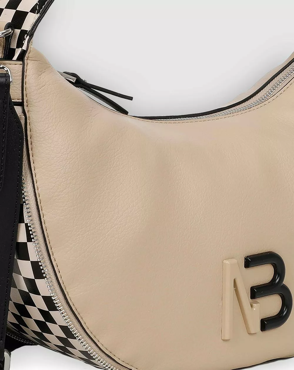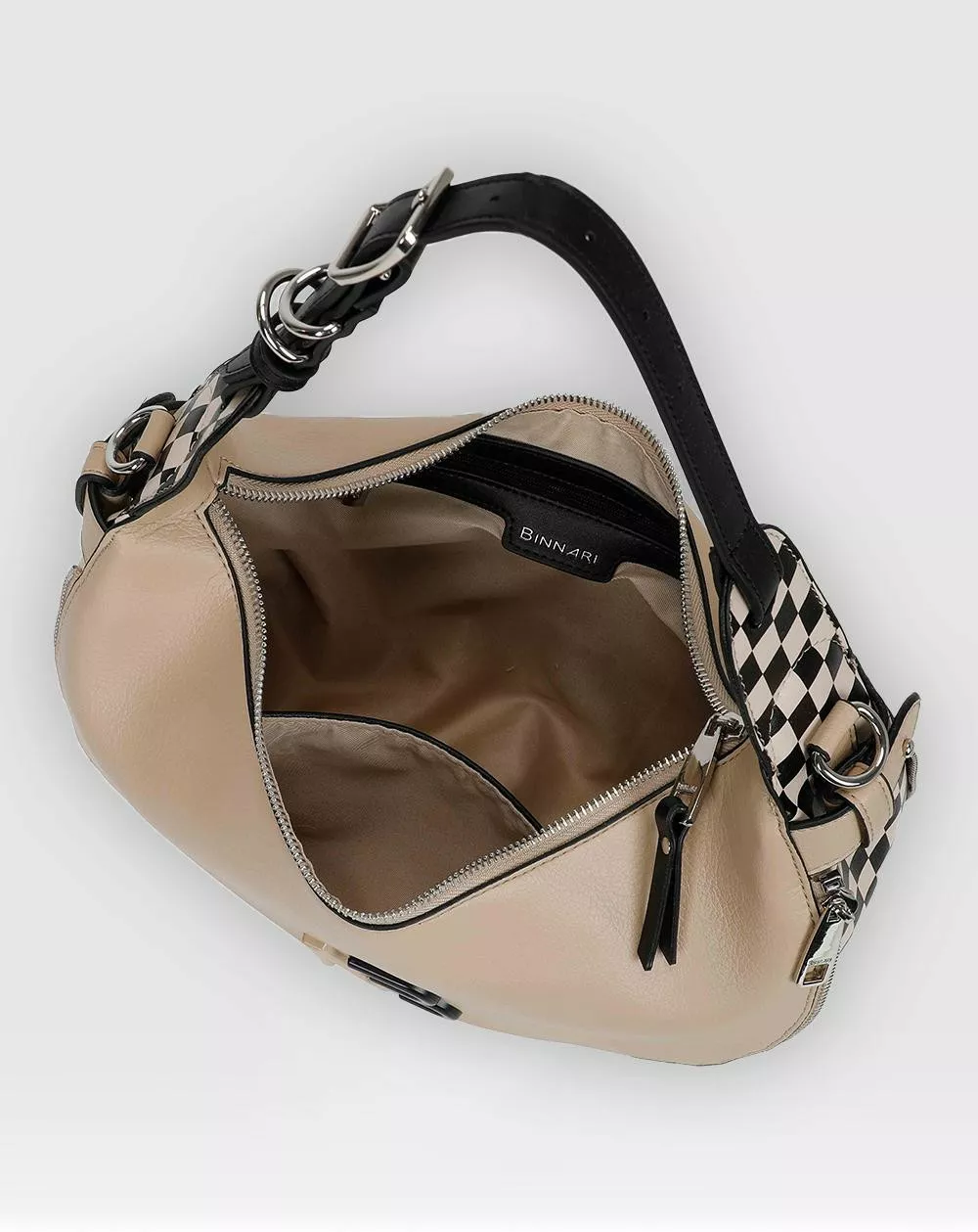 Bolso de hombro Binnari modelo Oslo beige y negro.