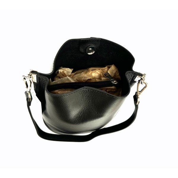 Bolso para mujer de la colección LB. Bolso con asa para colgar sobre hombro Cierre de botón metálico magnético. Separación con bolsillo interior de cremallera. Bolso fabricado en piel vacuno natural hidratada de alta calidad.