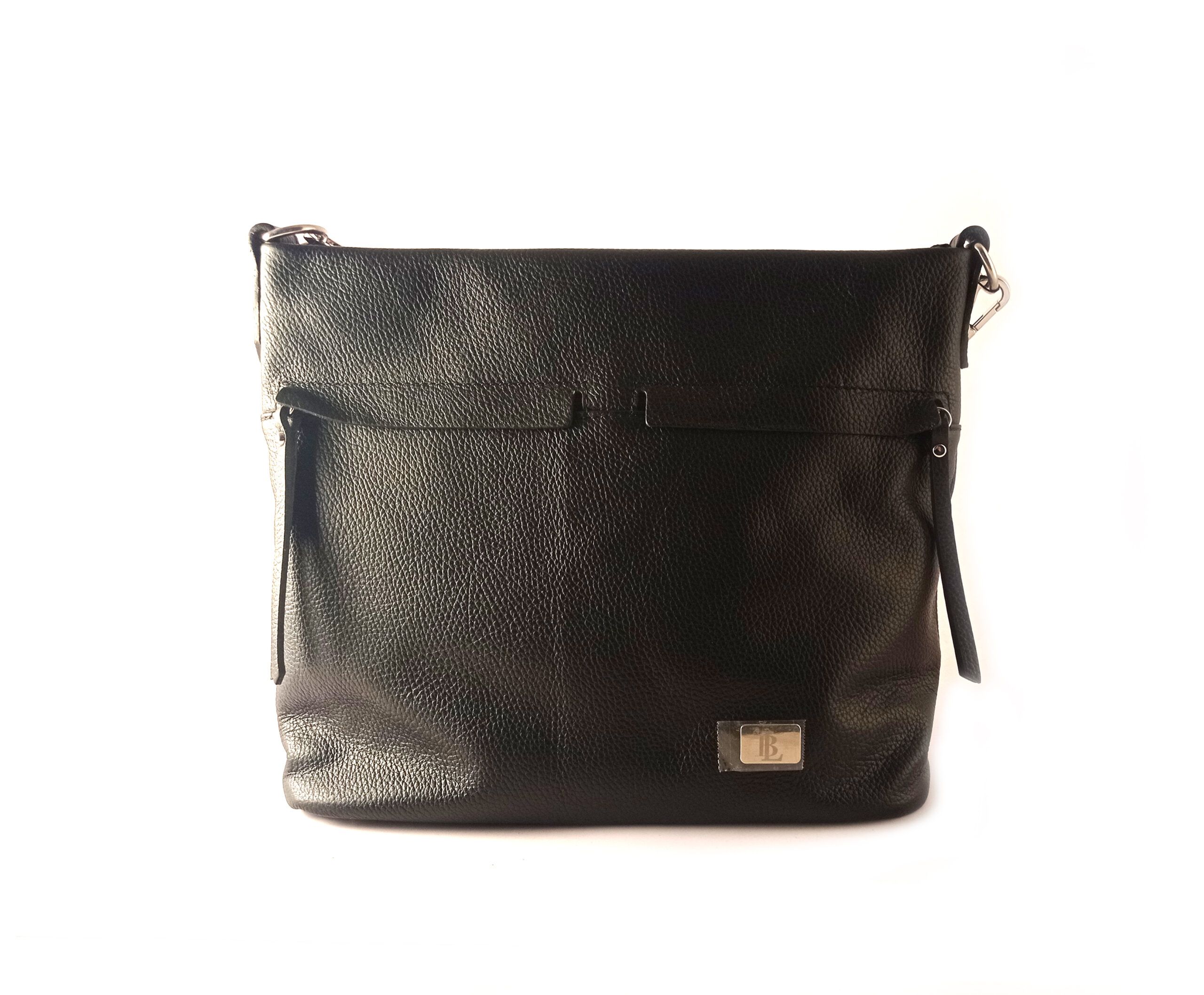 Bolso de hombro LB en piel legítima color negro.