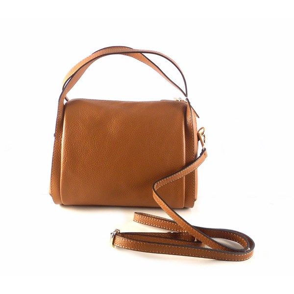 Bolso de mano dos asas en PIEL auténtica combinado camel