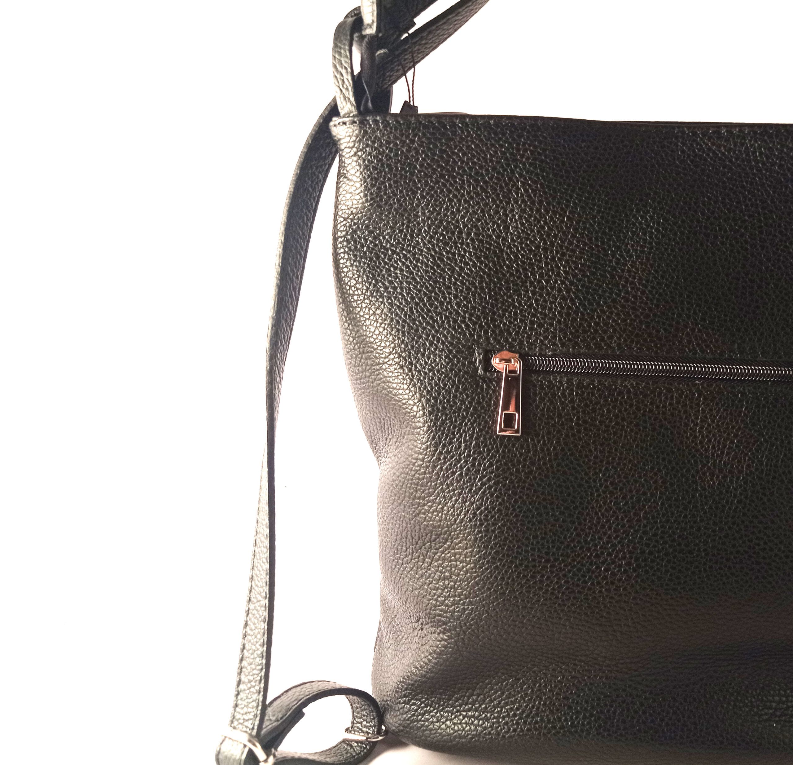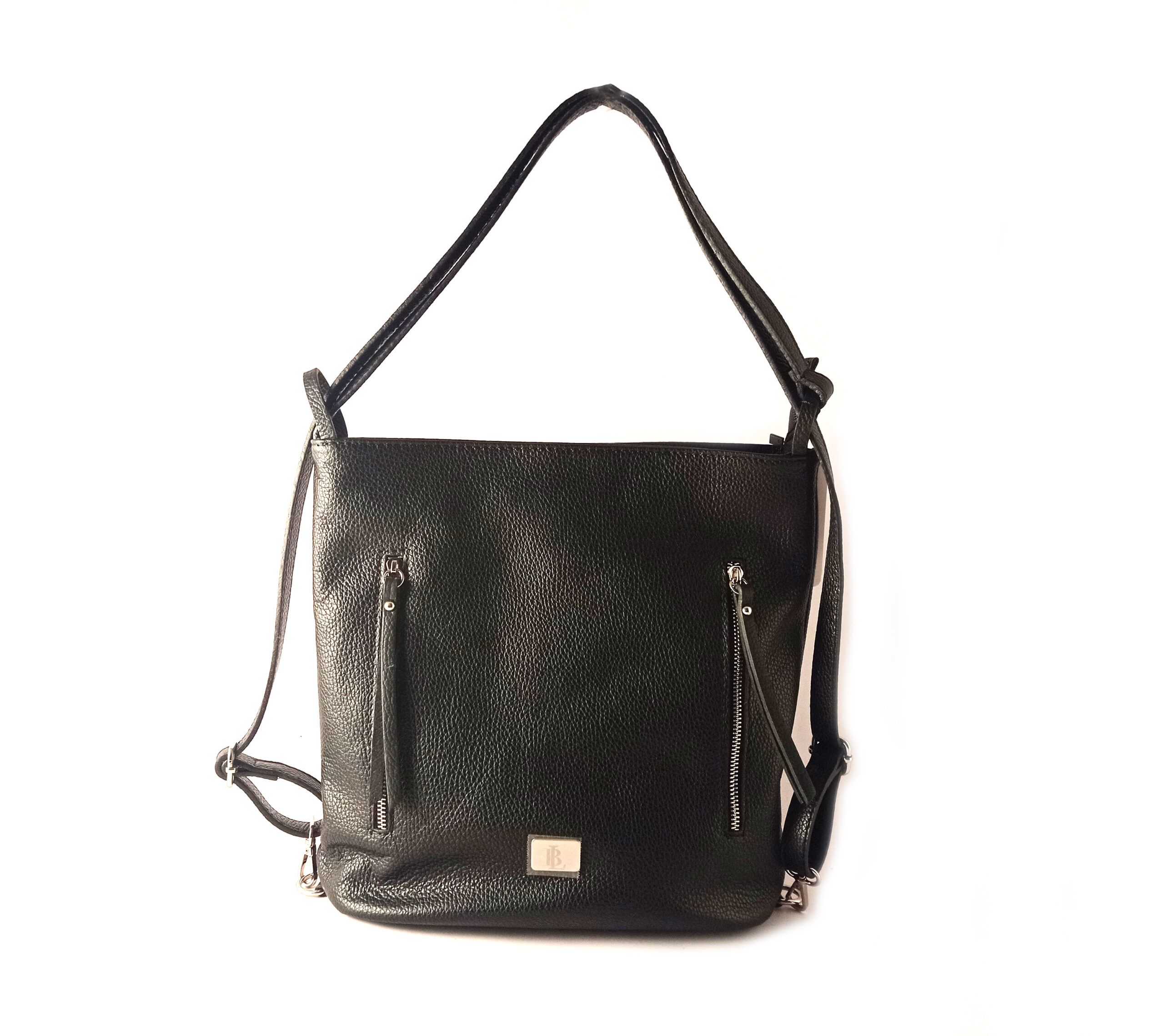Bolso convertible en mochila de la colección de LB. Bolso fabricado en piel vacuno natural auténtica, hidratada, suave y flexible. Asa central regulable para colgar sobre hombro con posibilidad de alargar para colgar como mochila. Cierre de cremallera con forro interior textil y bolsillo auxiliar. Bolsillos exteriores delanteros y trasero.