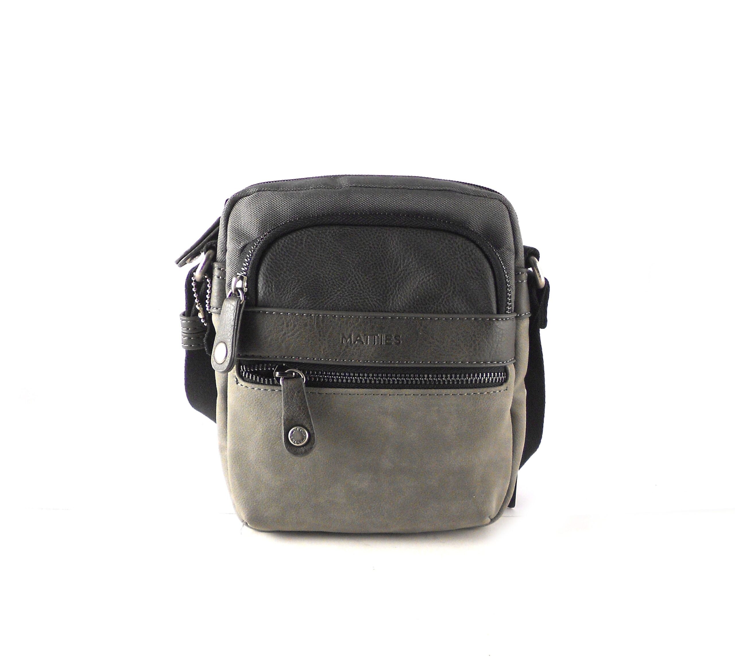 Bolso para hombre tipo bandolera de la colección de Matties. Bolso de tamaño pequeño con cremalleras exteriores delanteras y traseras. Bandolera regulable.