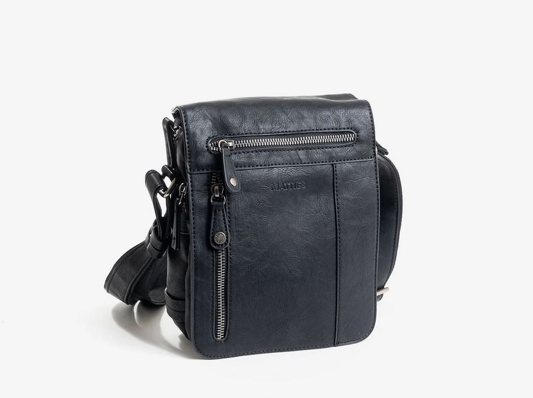 Bolso bandolera para hombre de la colección de Matties Bags. Reportero fabricado en polipiel de alta calidad, interior de forro textil con un bolsillo cerrado con cremallera. En la parte trasera tiene un bolsillo cerrado con cremallera. Asas con corredera para su fácil ajuste.