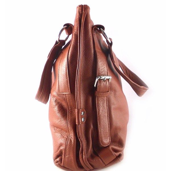 Bolso shopper en piel natural color cuero con doble asa.