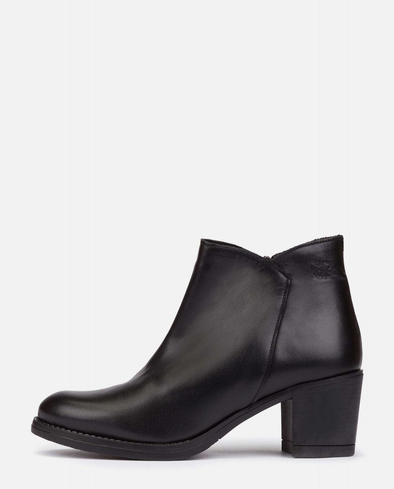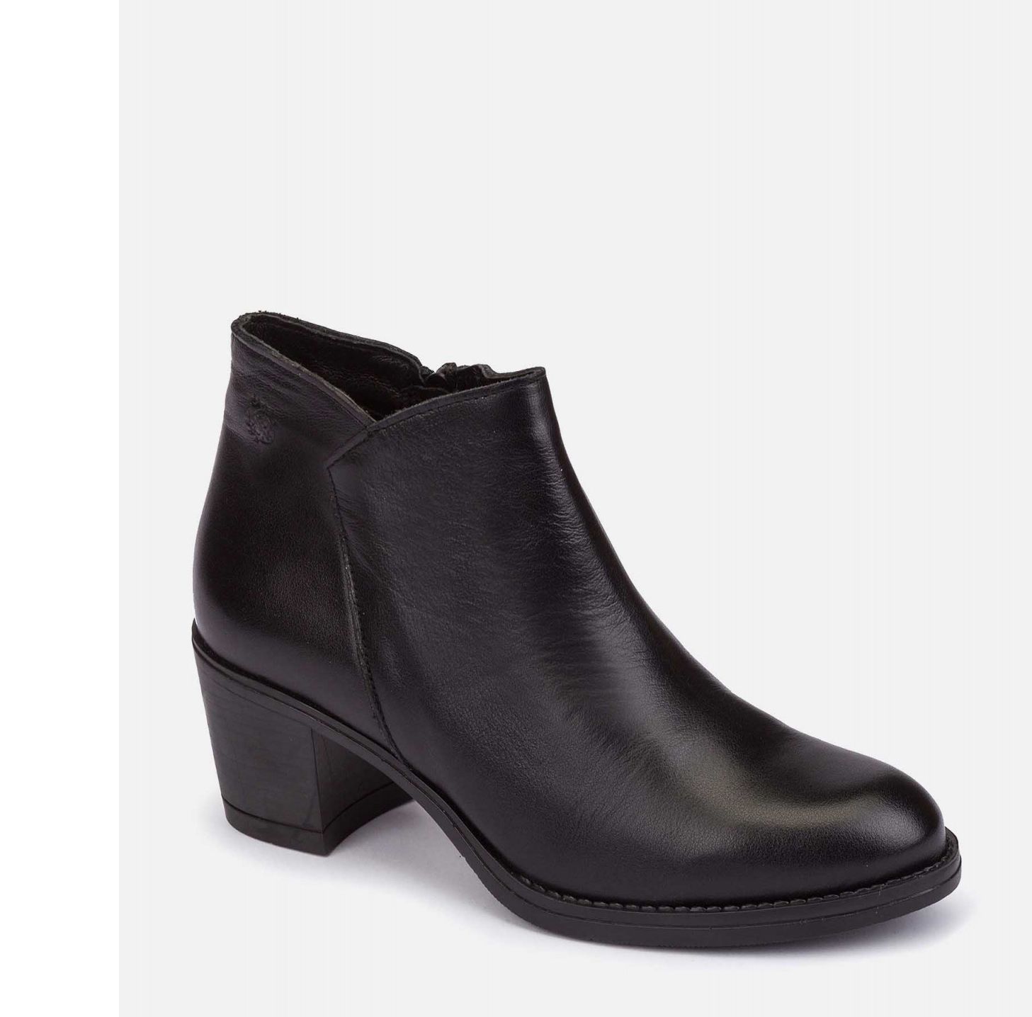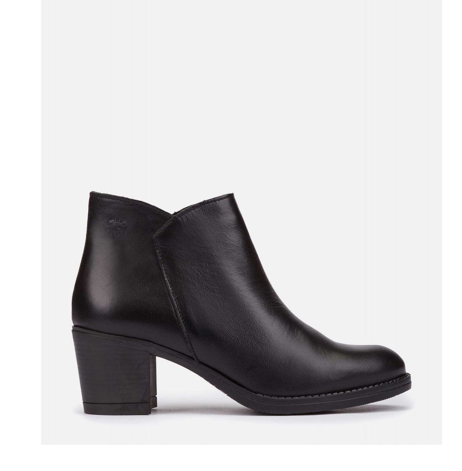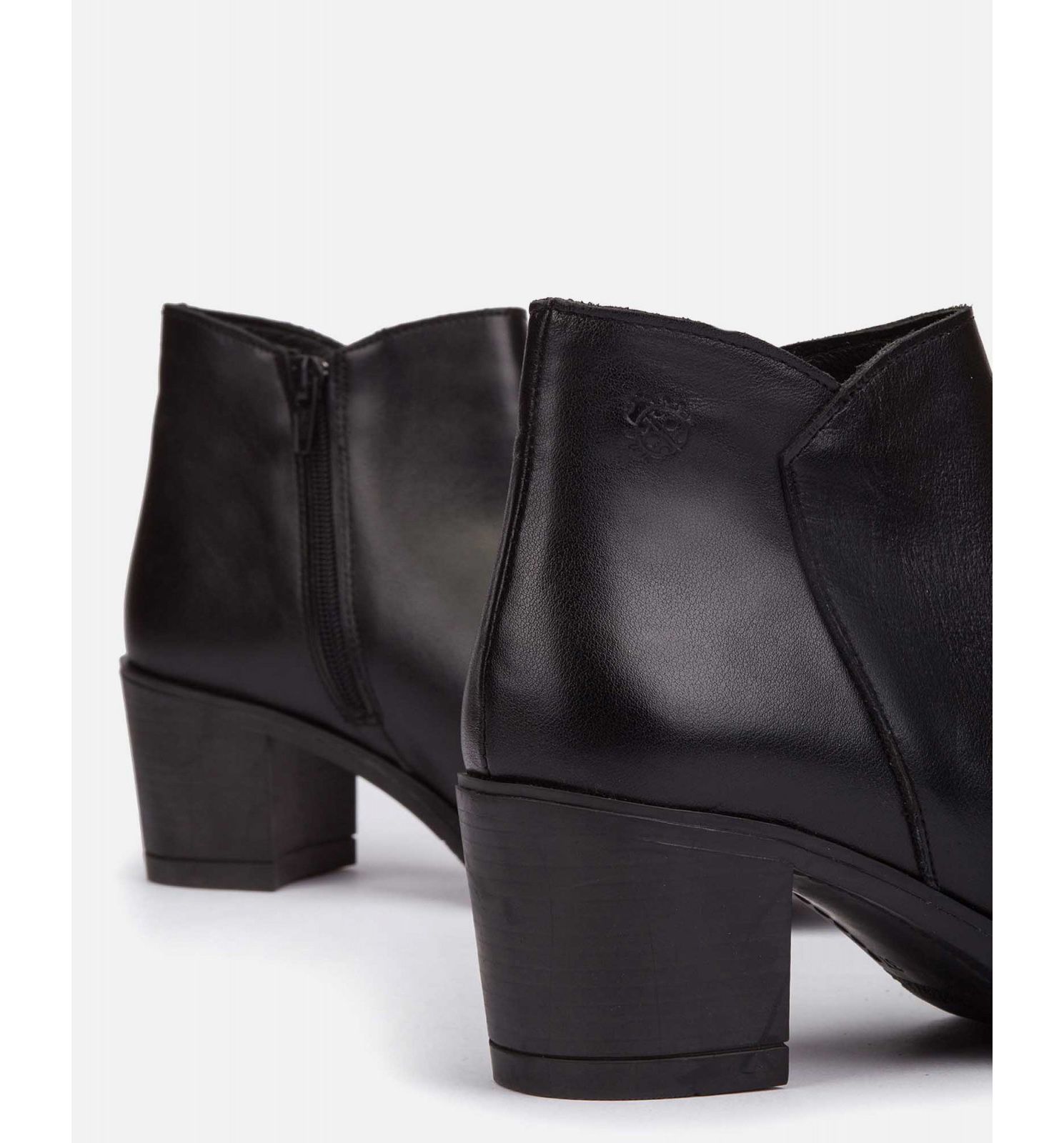 Botín negro de la colección de Yokono con un tacón de 5,5 cm con corte exterior de piel vacuna, e interior de piel porcina y textil, para un mayor confort y suavidad. Fabricada en España. Un básico que no pasa de moda. Gran flexibilidad. Plantilla acolchada y antideslizante que añade un extra de comodidad.Cierre de cremallera lateral.