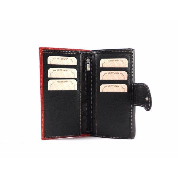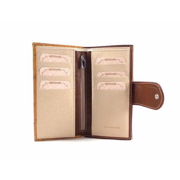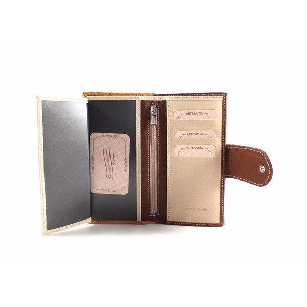 Cartera de la colección de Nilo en tamaño grande. Piel vacuno natural, hidratada. Monedero doble con cremallera central. Billetero con 12 tarjeteros, cremallera central y 2 espacios de fundas.