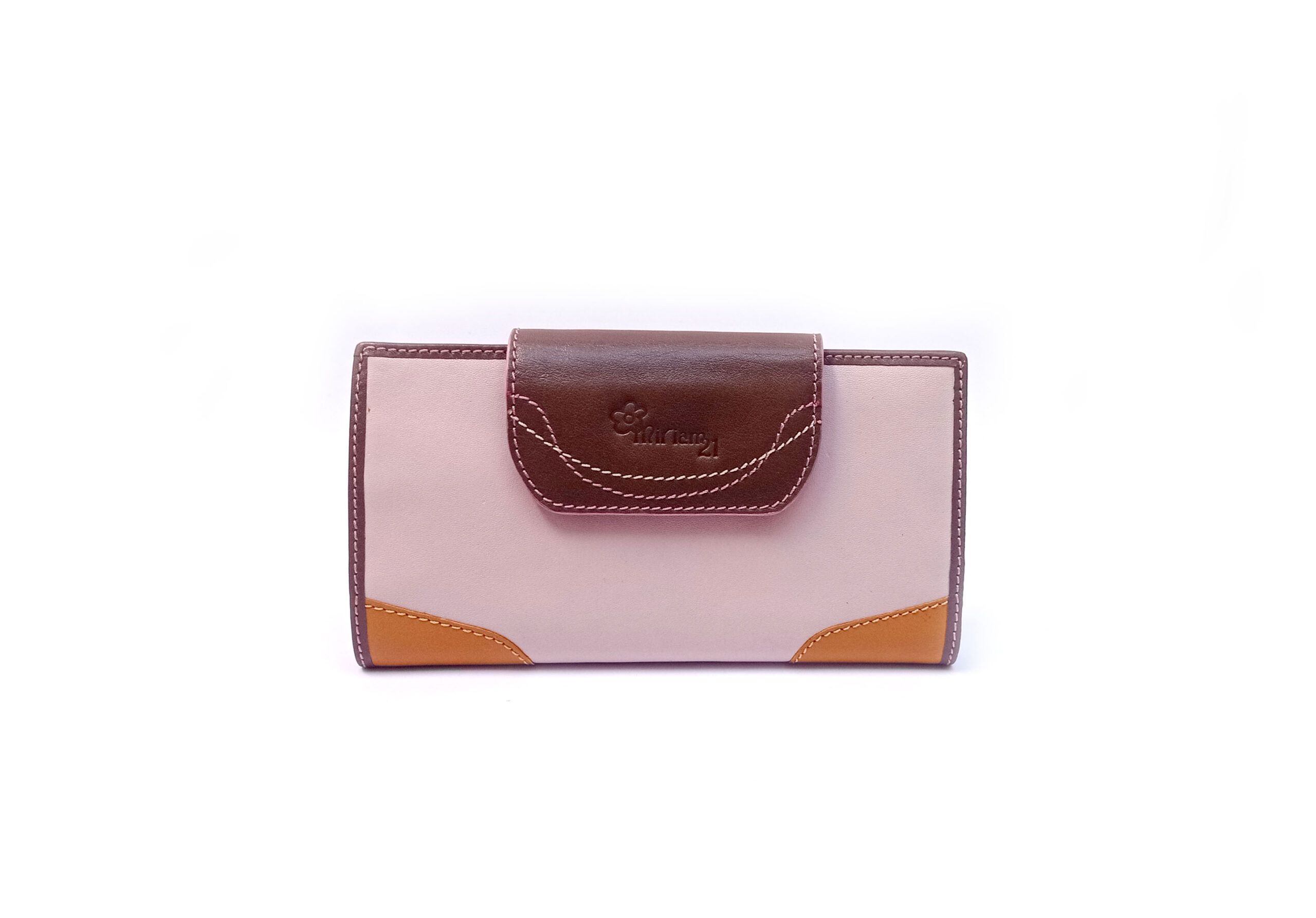 Cartera de piel para mujer grande rosa combinada de la colección de continuidad de Marroquinería Nilo.