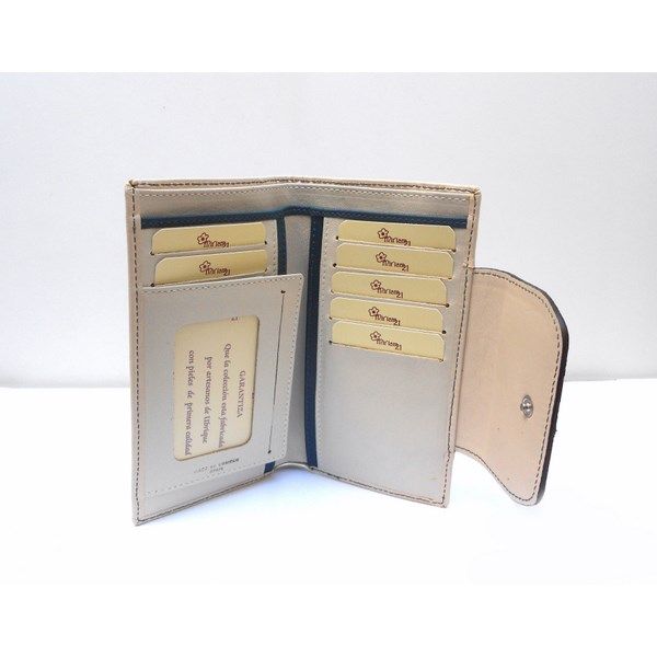 Cartera billetera para mujer de la colección de Marroquinería Nilo. Billetera con doble billetero y 12 ranuras para tarjetas. Monedero de cremallera trasero. Piel vacuno natural hidratada y flexible. Material suave de primera calidad. Alta marroquinería.