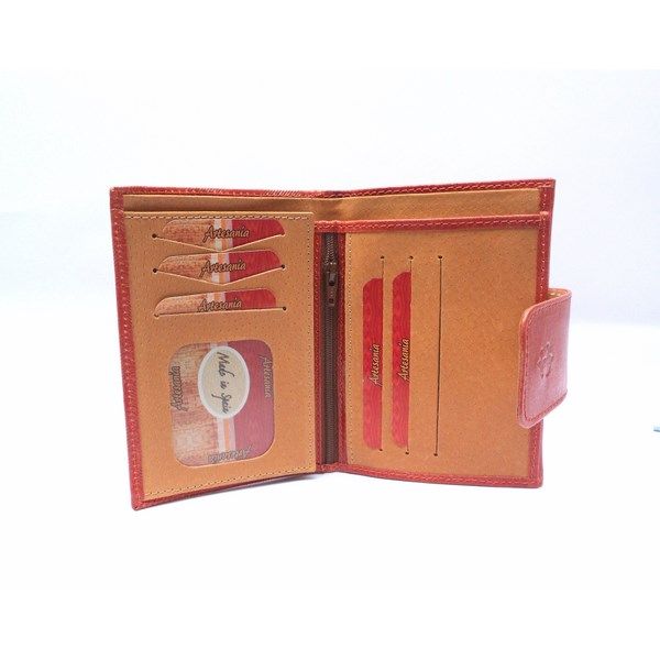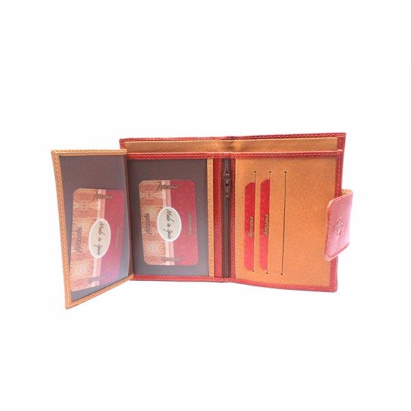 Cartera para mujer de la colección de Marroquinería Nilo. Cartera con 6 ranuras para tarjetas, 2 fundas transparentes, cremallera central y doble billetero. Monedero doble separado por compartimento con cremallera. Piel vacuno acharolada con print de cuadros.