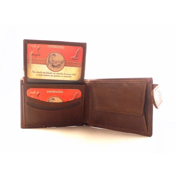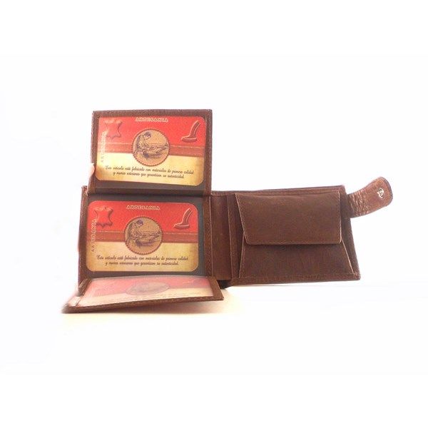 Cartera hombre de piel con monedero y correa de cierre. Por un lado esta cartera de caballero de piel de primera calidad tipo americano con cierre de correilla y monedero interior. Disponible en colores marrón o negro. Billetero con doble compartimento, forrado en raso de primera calidad. Monedero interior. 3 Compartimentos para tarjetas. 2 Compartimentos transparente para fotos o documentación. 1 Compartimento adicional. Fabricado en España.