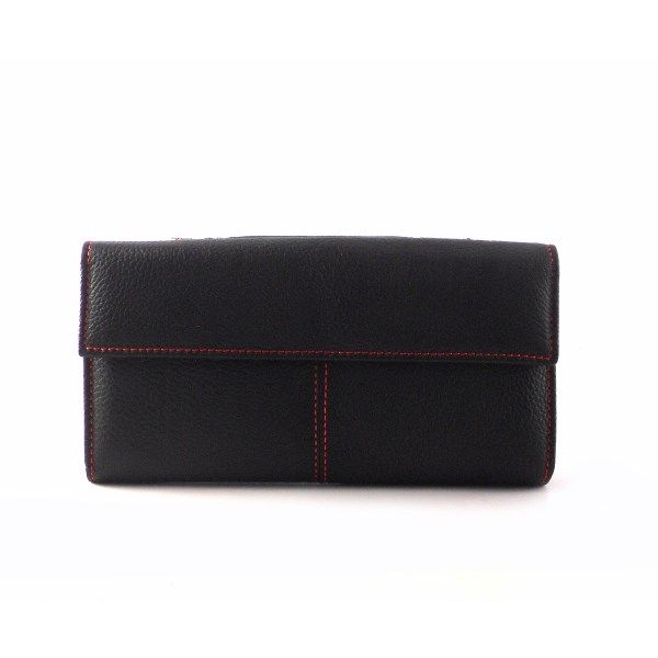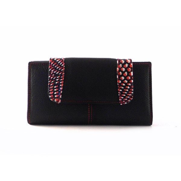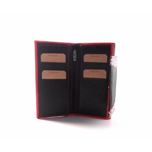 Cartera mujer grande de piel auténtica NILO combinada rojo/negro.