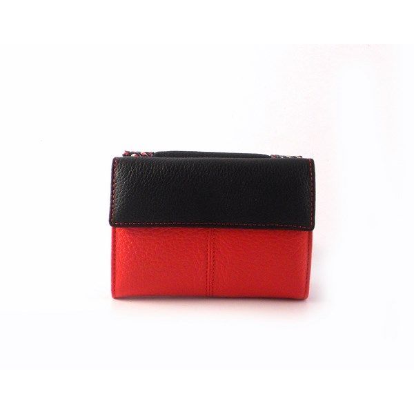 Cartera mujer pequeña piel auténtica NILO combinada rojo/negro.