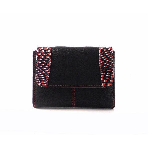 Cartera mujer pequeña piel auténtica NILO combinada rojo/negro