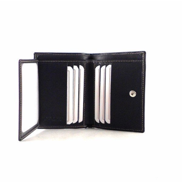 Cartera de hombre cerrada con broche. Piel vacuno natural hidratada y flexible. Monedero exterior de cremallera. Doble billetero con 8 tarjeteros.