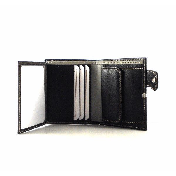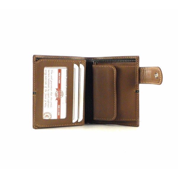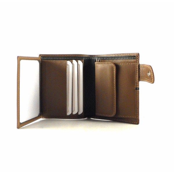 Cartera con cierre de broche exterior para hombre de la colección de Nilo. Piel vacuno natural hidratada y flexible. Doble billetero con 6 tarjeteros y monedero interno.