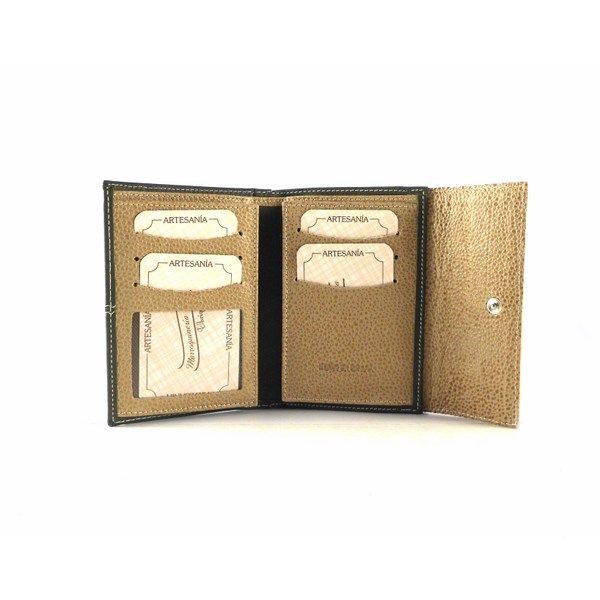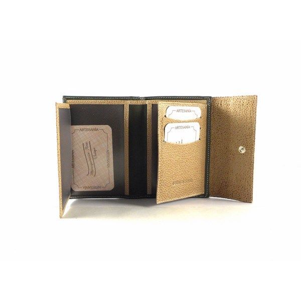 Cartera de mujer de tamaño pequeño con solapas de la colección de Nilo. Piel vacuno natural con solapa reptil. Monedero doble separado por bolsillo con cremallera central. Billetero con 6 tarjeteros y 4 espacios de fundas transparentes.