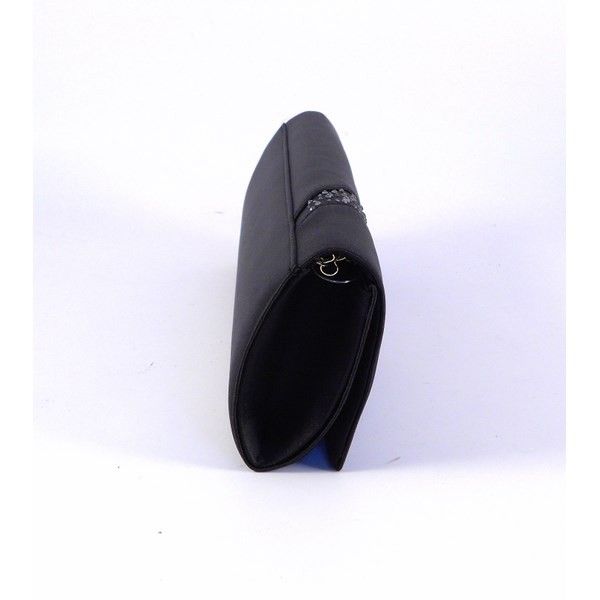 Cartera de raso negra con detalle de cristales en la solapa de Victoria Delef. Medidas aprox. 28 x 11 cm. Cadena dorada para colgar.