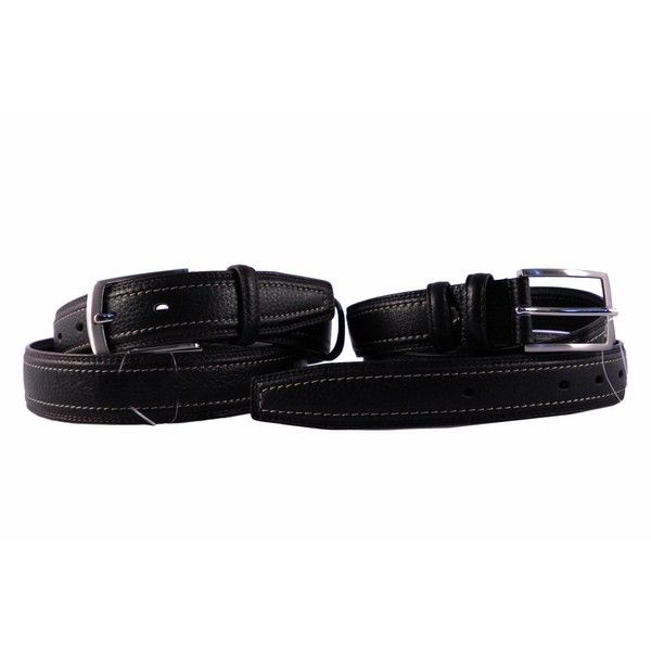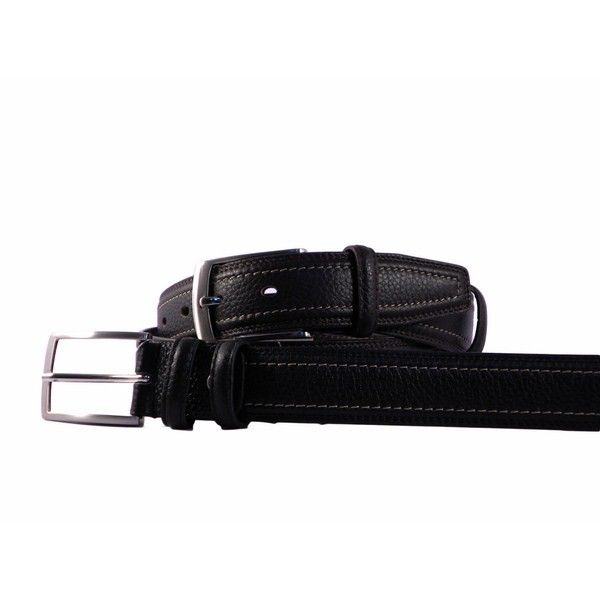 Cinturón de piel de primera calidad. Disponible en color negro con costuras vistas en contraste.