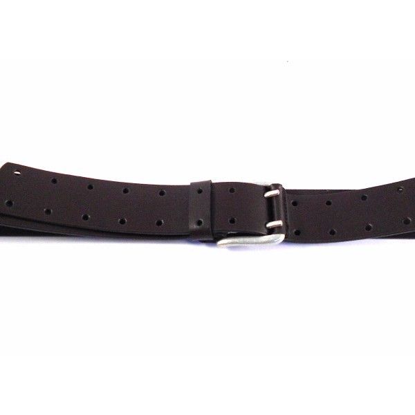 Cinturón en piel de primera calidad de estilo sport o vaquero. Detalle de doble agujereado a lo largo de toda la piel. Ancho del cinturón 4 cm y ancho de hebilla en color plata oscuro de 5,5 cm. Disponible en color marrón oscuro y negro.