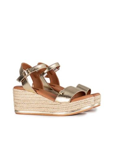 Cuña Baja Yute POPA Arambol Laminado Platino con hebilla de la colección primavera/verano de la marca.
