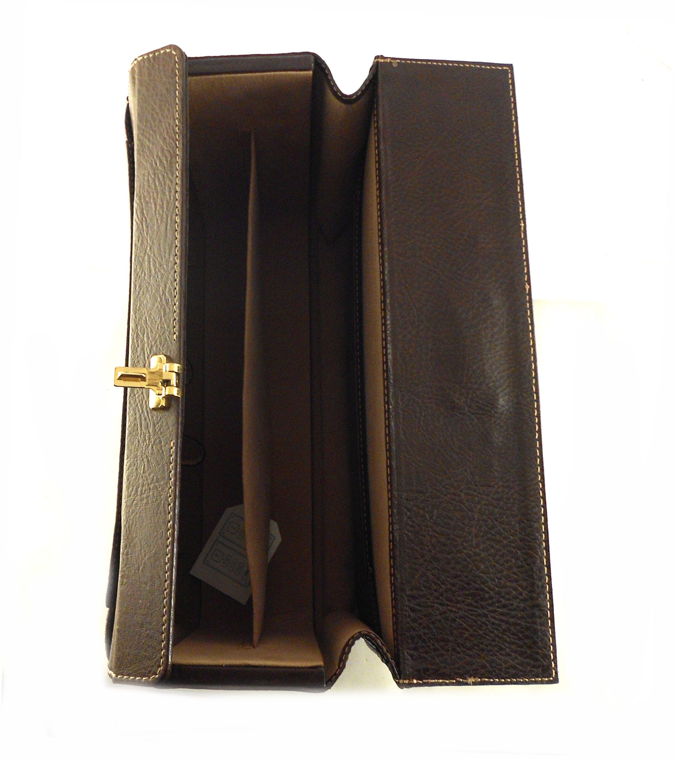 Maletín de médico en polipiel de primera calidad. Color único: marrón. Bolsillo exterior delantero. Compartimento principal separado. Fuelle extensible. Cierre metálico en dorado con clave de seguridad. Medidas: 36 x 26 x 20 cm.