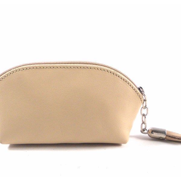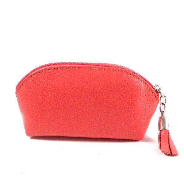 Monedero de piel vacuno hidratada. Cierre de cremallera con detalle de flecos en la terminación.