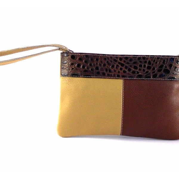 Neceser o cartera de mano de la colección de Nilo. Piel vacuno de primera calidad. Cierre de cremallera. Disponible en dos combinaciones diferentes. Cierre de cremallera. Detalle de muñequera al tono. Dimensiones: 13 x 20 xm.