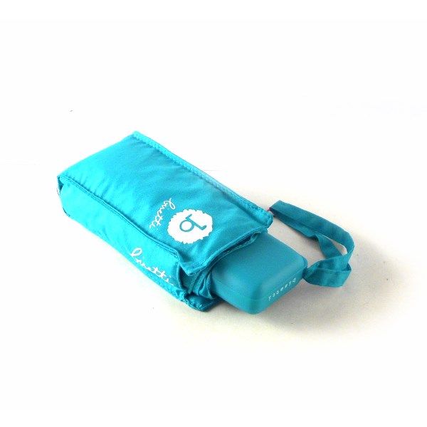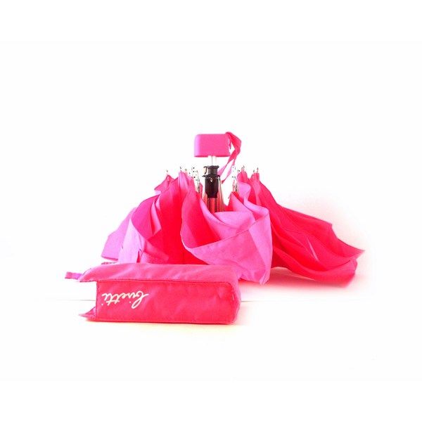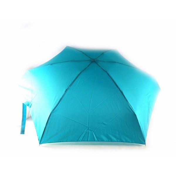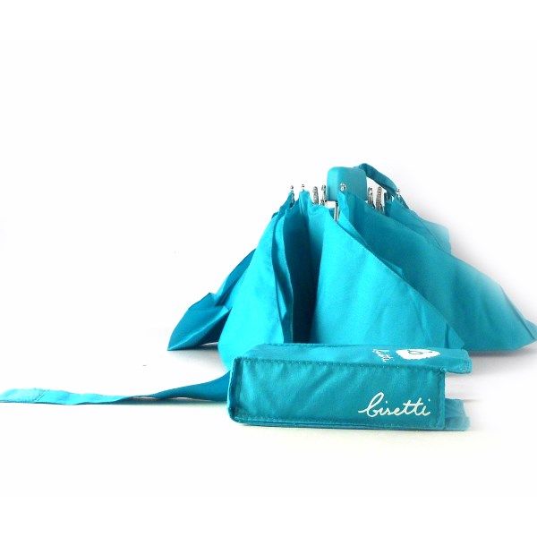 Paraguas plegable color azul turquesa, azul marino y rosa.