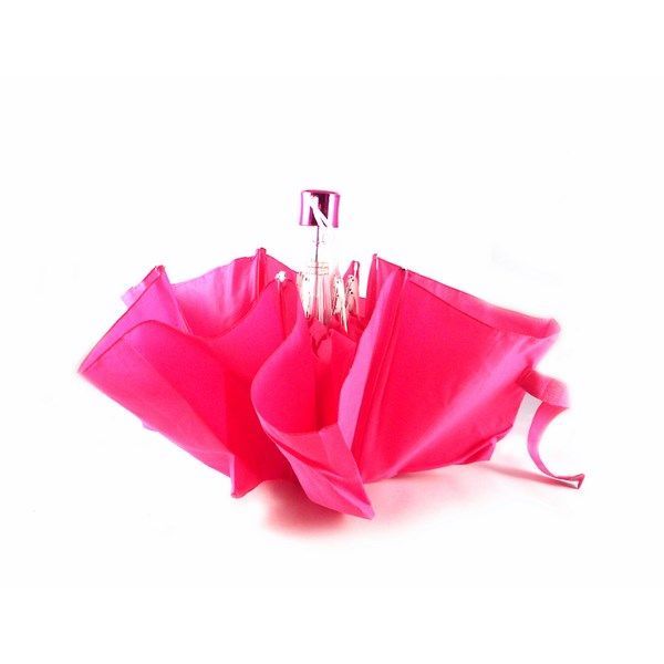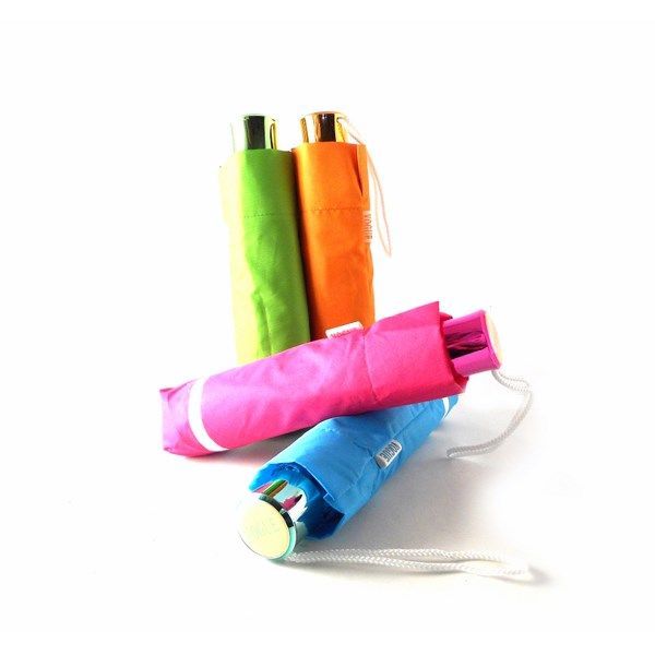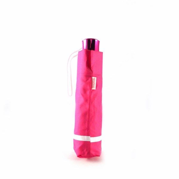 Paraguas plegable de la colección de Vogue. Mango metalizado al tono. Largo de 25 cm. (cerrado) con cierre manual. Funda a juego.