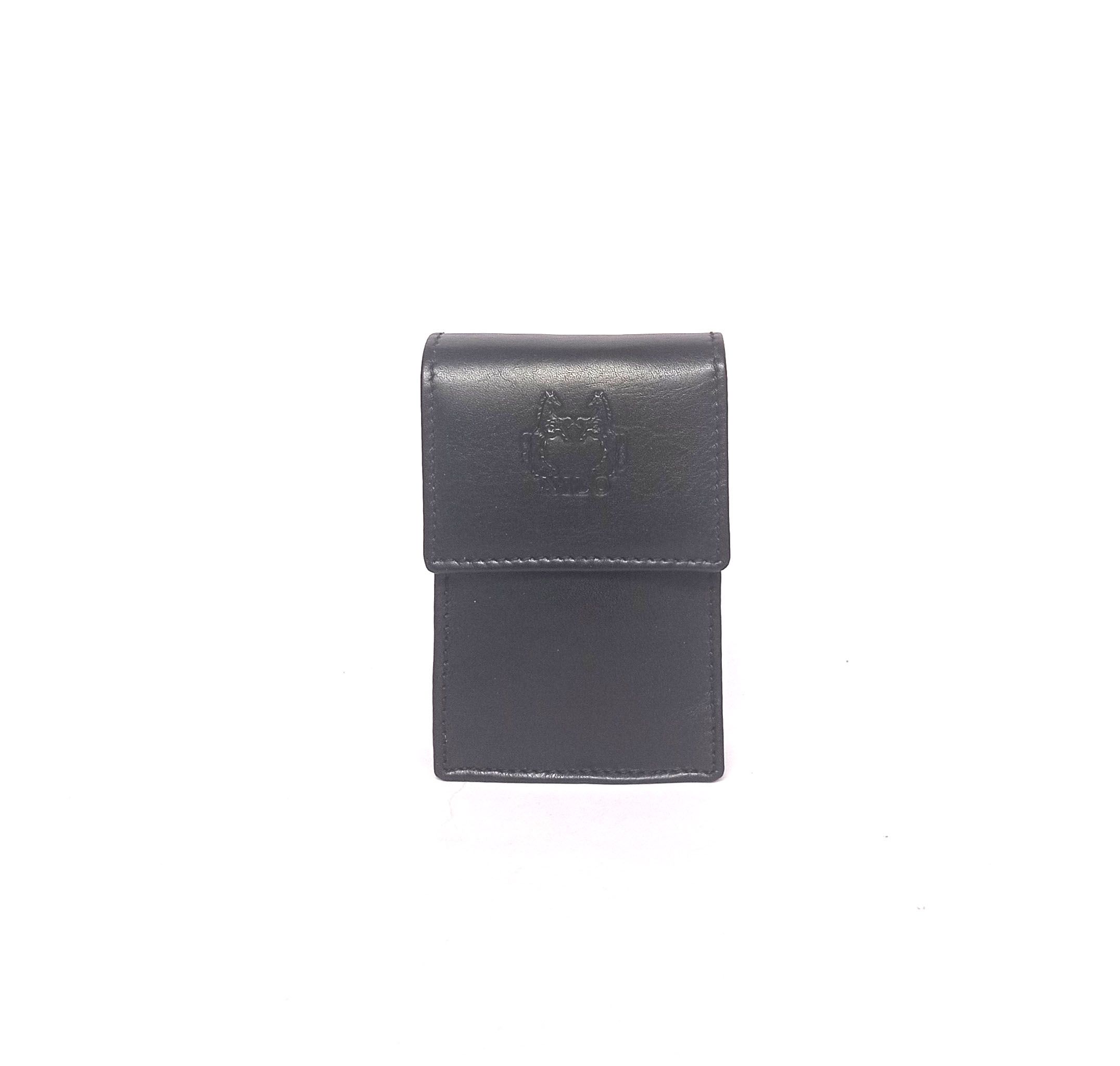 Pitillera piel Nilo con solapa y tarjetero en negro