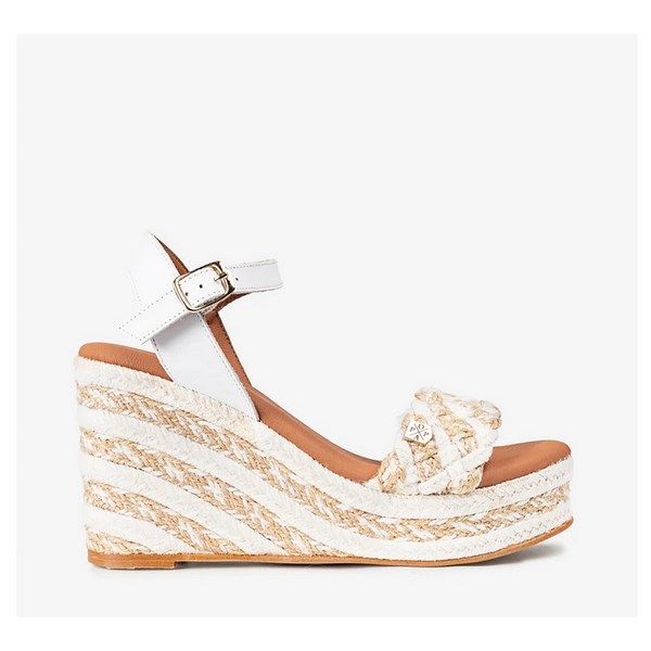 Sandalias de cuña alta Popa Bandon Cabriola blanco con hebilla.