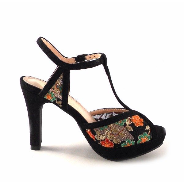 Sandalias de tacón alto Prestigio estampado floral color negro