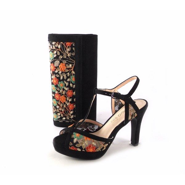 Sandalias de tacón alto Prestigio estampado floral color negro.