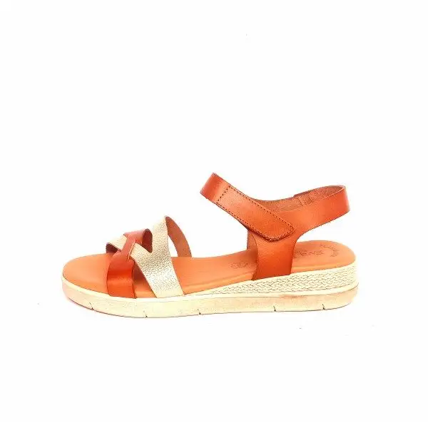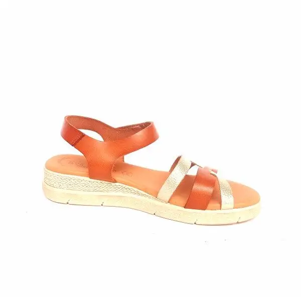 Sandalias de tiras con cuña baja Eva Frutos cuero y oro.