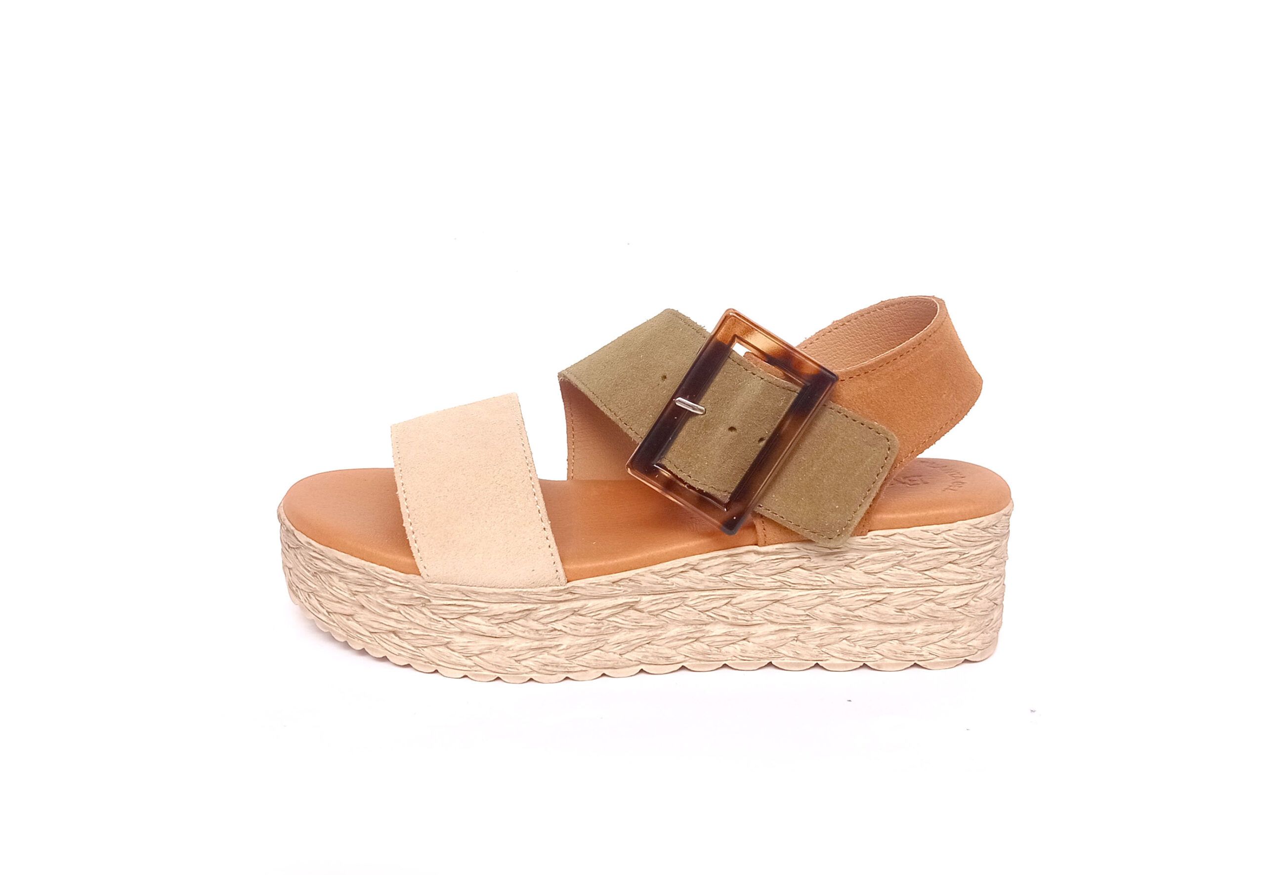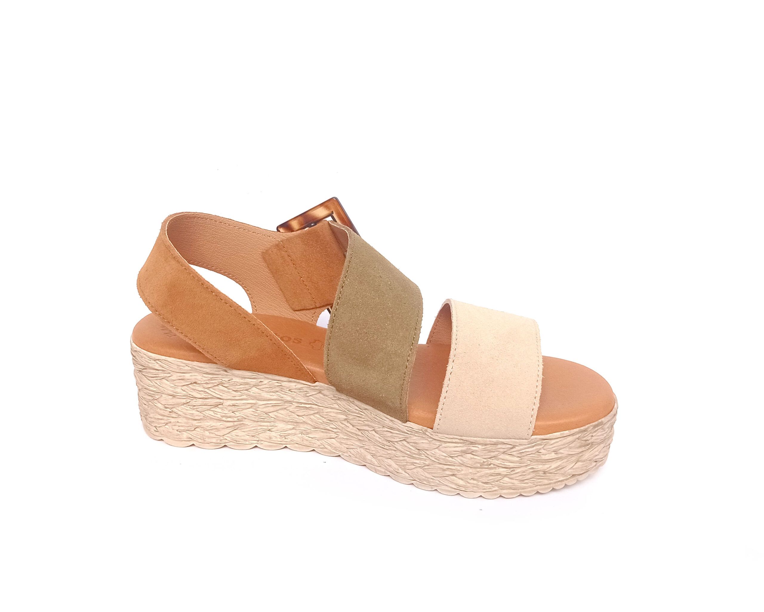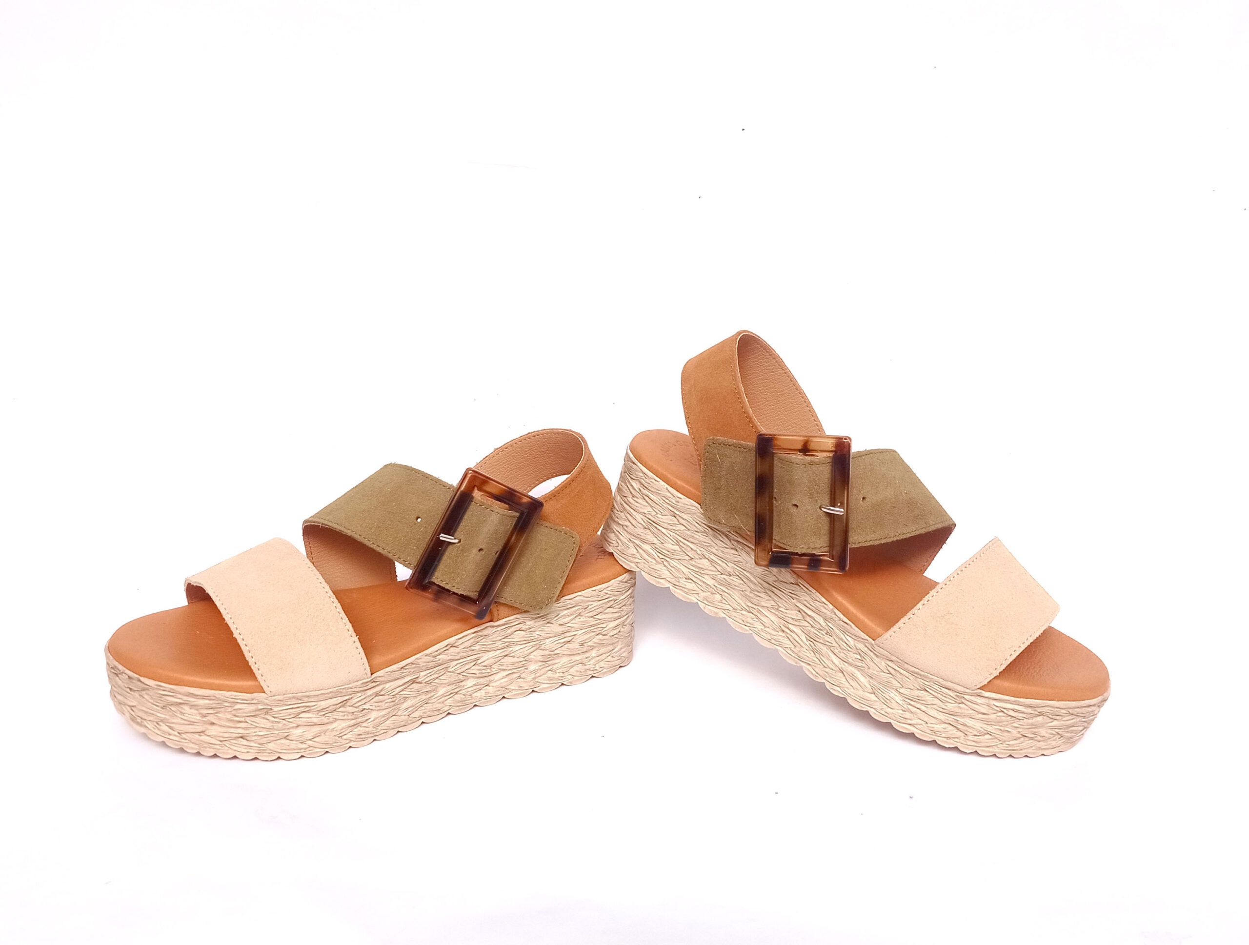 Sandalias de tiras con hebilla lateral de carey de la colección de Eva Frutos. Sandalias de efecto trenzado de 4 cm y cuña de 6,5 cm. Sandalias fabrciadas en piel de alta calidad con tiras en piel de melocotón suave y adaptable. Detalle de hebilla ajustable. Planta acolchada en piel. Muy ligeras y ergonómicas.